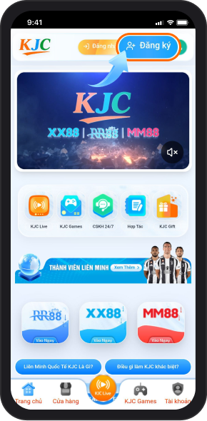 Bước 1: Ở trang chủ liên minh quốc tế KJC chọn mục “đăng ký”.