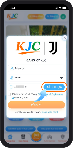 Bước 2: Điền đầy đủ thông tin “tài khoản”, “mật khẩu”, “SĐT”, và bấm xác thực để đăng ký tài khoản.